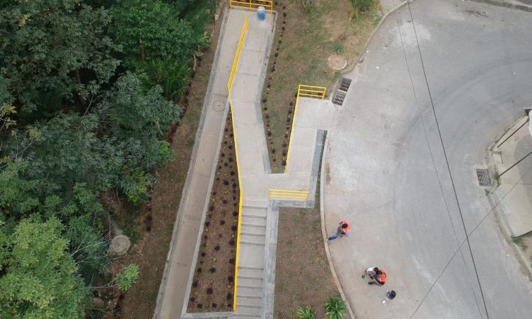 Con una inversión superior a los 135 millones de pesos, se realizó la renovación de 174 metros cuadrados de espacio público que consistieron en la construcción de rampas y escalas, mantenimiento de pasamanos existentes y la instalación de tramos nuevos.