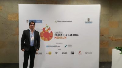 El docente de la Facultad de Ciencias Empresariales y Coordinador del Centro de Innovación y Consultoria de la IUE, Maximiliano Ballesteros, asistió como representante de la Institución a la Cumbre Economía Naranja que se realizó en Plaza Mayor, Medellín.