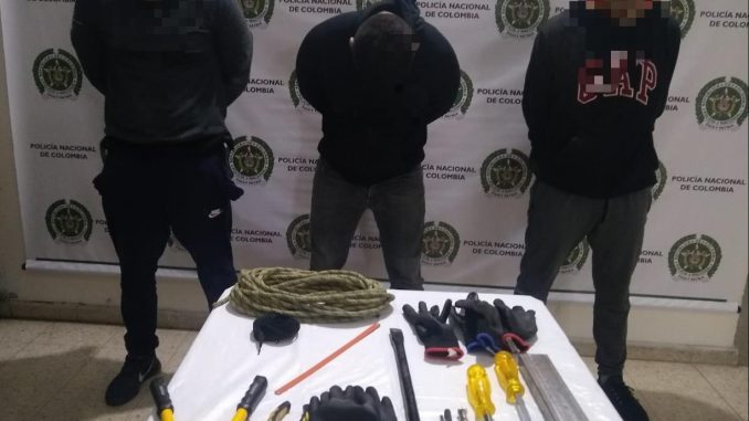 De inmediato se informó al cuadrante y gracias a la efectividad y pronta reacción de las patrullas, lograron la captura de 3 hombres, los cuales portaban herramientas para hurtar viviendas (destornilladores, palancas, lazos, entre otros).