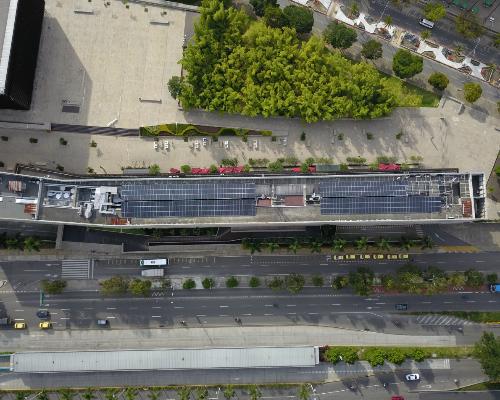 Medellín, 3 de febrero de 2020. Enmarcado en su gran apuesta por la sostenibilidad, Plaza Mayor avanza en la generación de energías renovables no convencionales, a partir de 504 paneles solares instalados en la Torre Norte, los cuales entran en operación a partir del día de hoy y producirán aproximadamente el 18% del consumo actual del recinto.