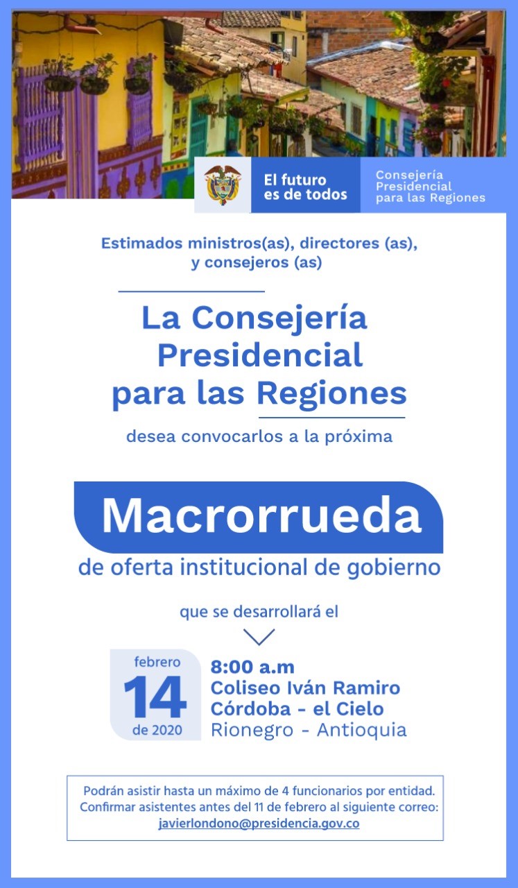 La Caja estará presente en la Macrorrueda de Oferta Institucional de Antioquia, que tendrá lugar este 14 de febrero en el Coliseo Iván Ramiro Córdoba de Rionegro, oriente del departamento.