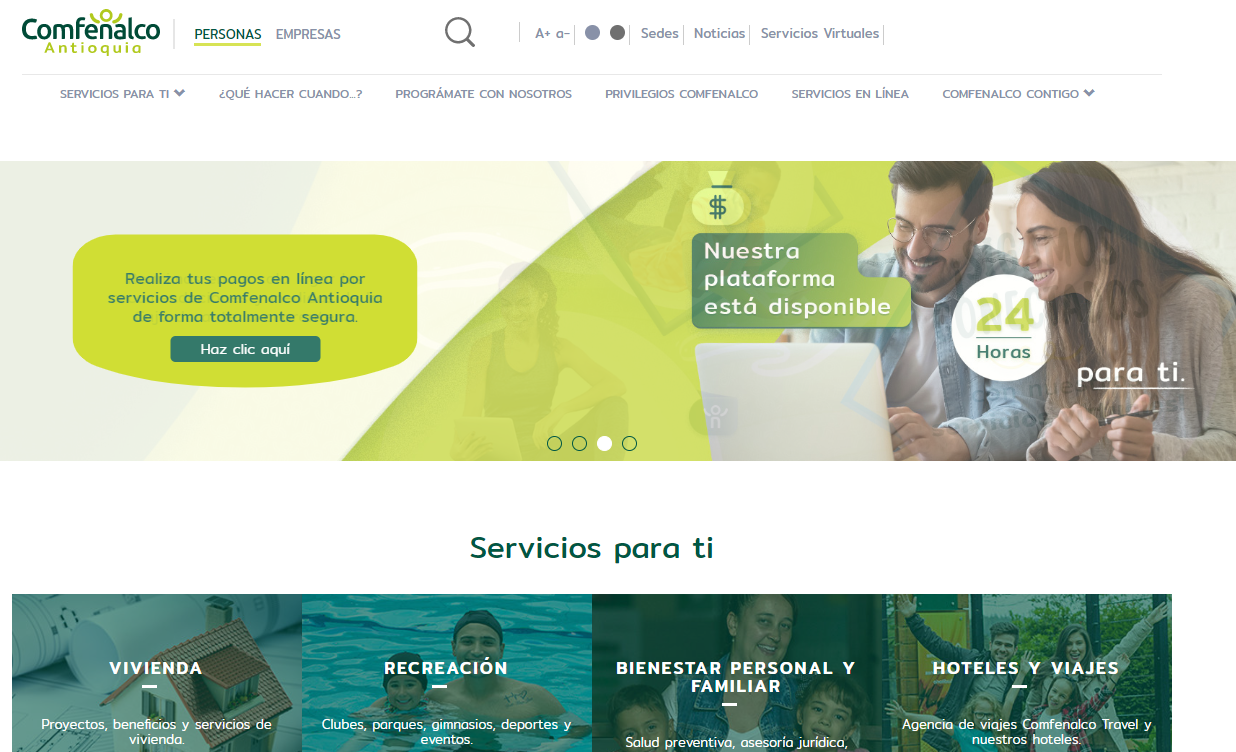 Es por eso que la Caja ha habilitado las opciones de pago desde casa en su portal web www.comfenalcoantioquia.com.co, con una plataforma que funciona las 24 horas, donde los usuarios podrán realizar pagos de las cuotas de los proyectos de vivienda, las cuotas de los créditos adquiridos con Comfenalco, las facturas de cartera comercial, servicios de hoteles y agencia de viajes de una manera cómoda y segura.