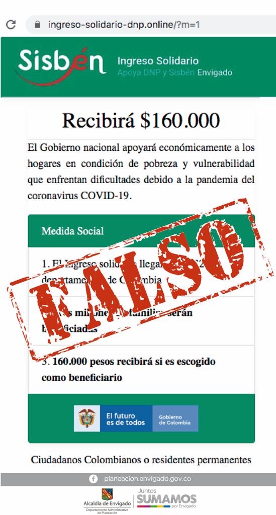 La Alcaldía de Envigado, a través del Departamento Administrativo de Planeación, le informa a la ciudadanía que el único sitio autorizado para verificar si puede acceder al Ingreso Solidario entregado por el Gobierno Nacional es: https://ingresosolidario.dnp.gov.co/#.