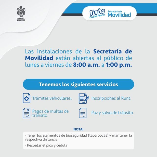Con las respectivas medidas de bioseguridad, se inicia atención al público para trámites, inscripciones, pagos y paz y salvo. Trae tu tapabocas para poder ingresar.