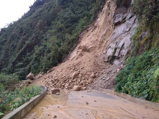 Este derrumbe fue ocasionado por las fuertes lluvias, las cuales activaron un talud rocoso inestable ubicado en este sector. No se reportan viviendas afectadas y por el bajo flujo vehicular de la época no hay afectaciones en la movilidad.