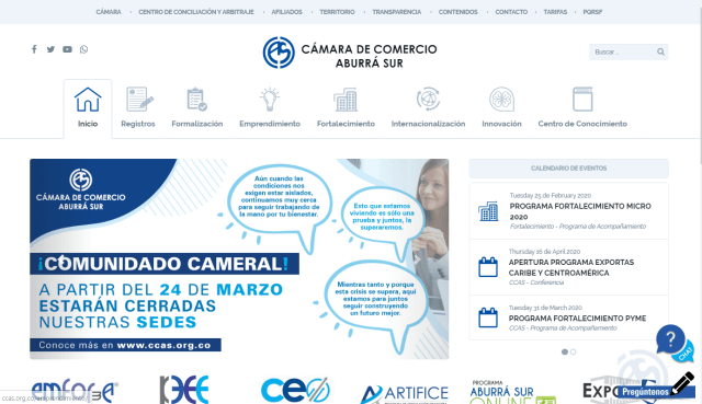 La CÁMARA DE COMERCIO ABURRÁ SUR cerrará, desde este Martes 24 de Marzo, su Sede Principal en Itagüí; sus Sedes Seccionales de Caldas, Envigado, La Estrella y Sabaneta y la Sede de su Centro de Convenciones Aburrá Sur en Itagüí.