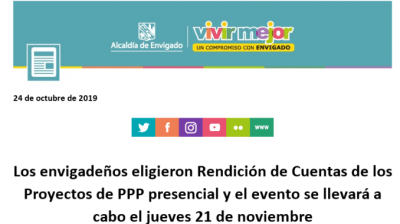 Los envigadeños eligieron Rendición de Cuentas de los Proyectos de PPP presencial y el evento se llevará a cabo el jueves 21 de noviembre