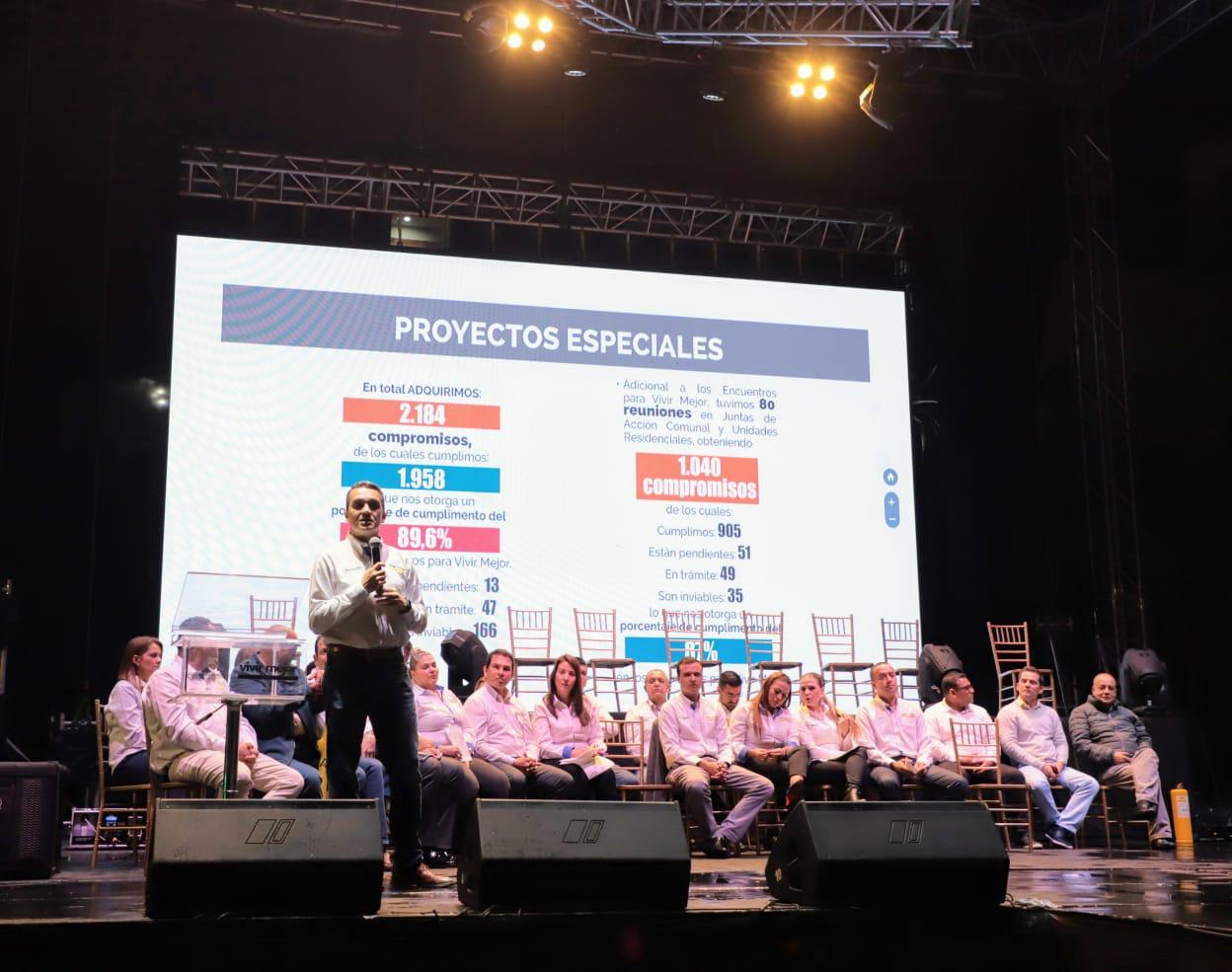 Durante la Rendición de Cuentas se evidenció la transformación del territorio en todas sus aristas y el legado de un mejor futuro: “Así como ven un territorio que se está transformando desde lo físico, en estos próximos años verán mayor integración pero también un territorio que fluirá mejor, que tendrá más posibilidad de que la gente se integre recorriendo el territorio en bicicleta, de forma segura, con más biodiversidad, más verde, más vida, más aire y más sostenibilidad”, concluyó el Director.