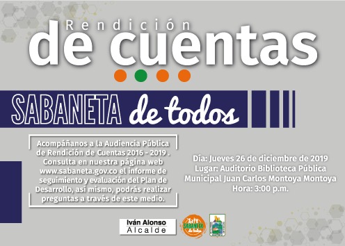 El alcalde Ivan Alonso Montoya, lideró la última audiencia de Rendición de Cuentas de su administración en la que reportó a los sabaneteños una ejecución del 95% del Plan de Desarrollo 2016 -2019 ‘Sabaneta de todos’.