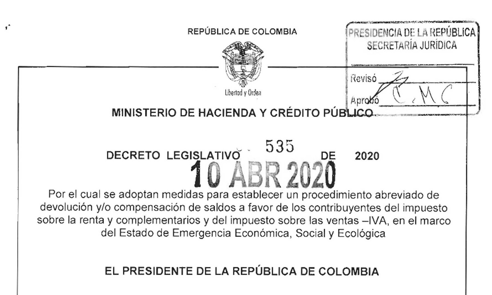 A la fecha, 850.000 hogares colombianos ya se benefician de esta medida y “de aquí a la próxima semana llegaremos al primer millón de hogares; después de que lleguemos a ese millón de hogares, la segunda semana de mayo arrancará el segundo giro de esa devolución del IVA, que son $75.000 nuevamente a ese millón de hogares”, subrayó.