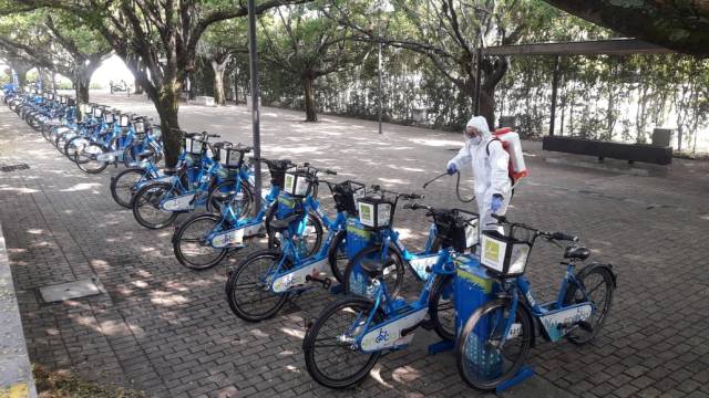 ​Contaremos con una cuadrilla de desinfección que estará asperjando estaciones y bicicletas con una solución a base de alcohol y amonios cuaternarios, cada 10 o 15 minutos.