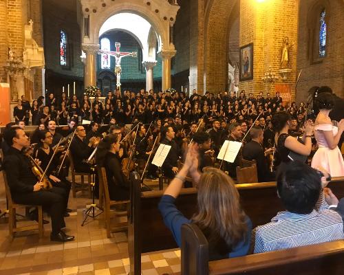 Cerca de 300 espectadores aplaudieron las notas de esta presentación musical, que contó con el apoyo vocal de la soprano Sofía Blandón, la contralto Stefania Palacio, el tenor Andrés Gómez y el barítono Alberto Peña.