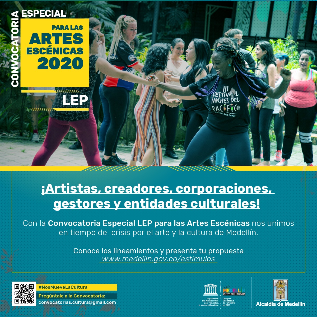 Con el propósito de acompañar al sector artístico y cultural durante la contingencia actual, la Alcaldía de Medellín pone en marcha la Convocatoria Especial LEP para las Artes Escénicas.