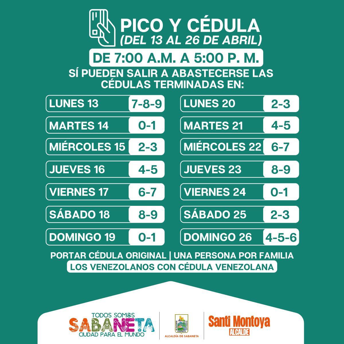 Sabaneteños, muy atentos porque a partir de este lunes cambia el Pico y Cédula. Esto con el fin de contener la propagación del virus y evitar que haya tantas personas en la calle.
