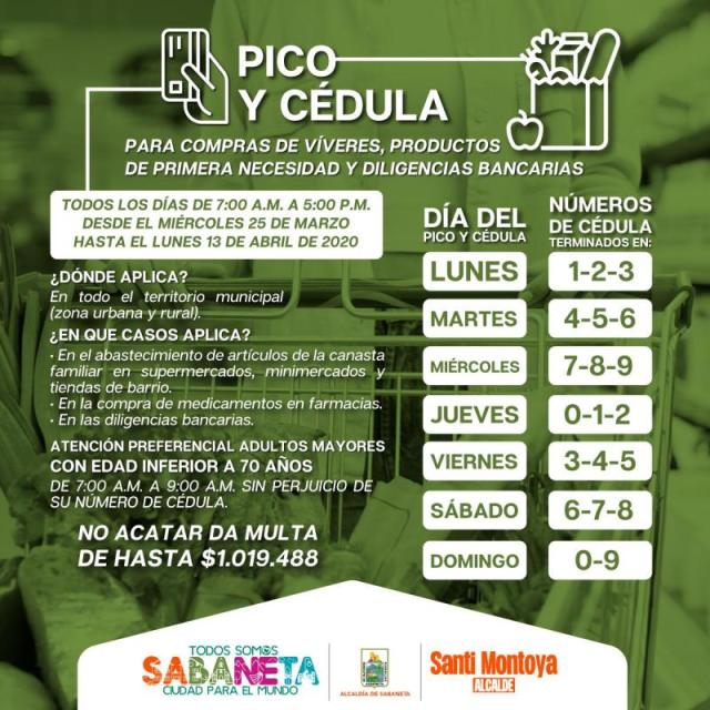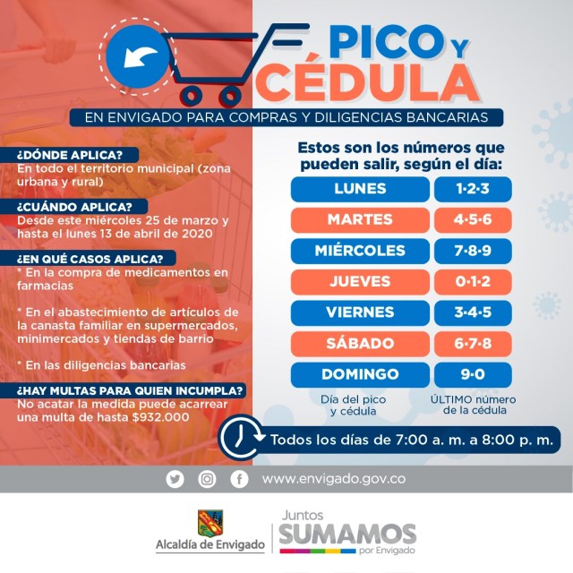 De acuerdo a la medida de aislamiento preventivo obligatorio para los colombianos, en Envigado se busca facilitar a los habitantes los desplazamientos en sus vehículos, ya sea para abastecerse de alimentos o para que las personas exentas de la medida puedan movilizarse.
