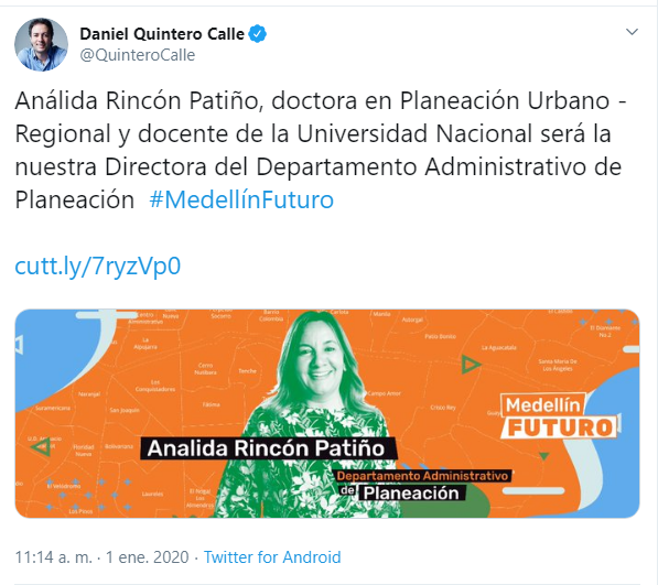 De acuerdo con Alejandro Osorio Carmona, director encargado del Departamento Administrativo de Planeación, “Medellín no puede ser entendido como un territorio aislado. Al estar inmerso en un departamento debe buscar también su potencialidad en los proyectos regionales”.