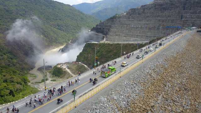 Con la entrega de la vía sustitutiva a la comunidad, el Proyecto alcanza un nuevo hito. Desde la vía se pueden observar: la presa de 435 metros sobre el nivel del mar (msnm), el vertedero completamente operativo y el embalse.